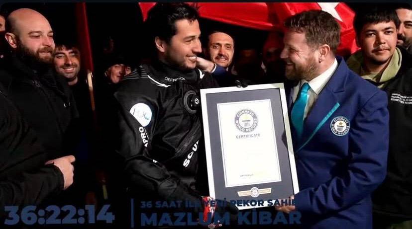 Kibar’ın bu tarihi anlarına kıyıda ailesi, teknik ekibi ve heyecanlı bir kalabalık eşlik etti. Portekiz’den gelen Guinness hakemi Richard Williams’ın denetiminde gerçekleştirilen dalış, sürenin dolmasıyla birlikte resmiyet kazandı. 18 Mart’ın hatırasına adanan bu rekor, hem Türkiye hem de dünya dalış tarihine altın harflerle kazınmış oldu.