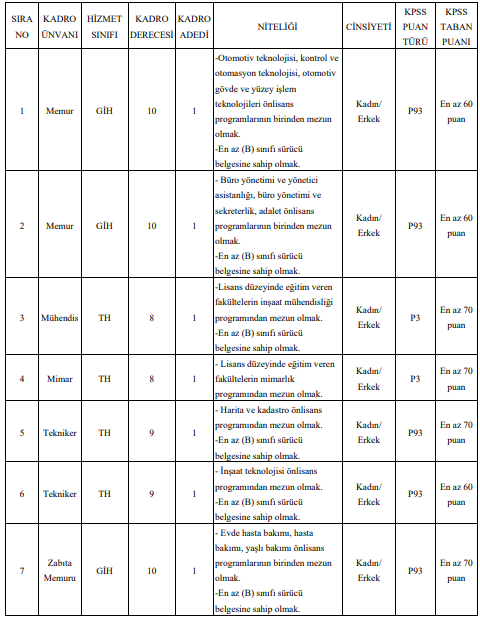 Adayların ayrıca ilan edilen kadrolara özel kriterleri taşıması zorunlu.