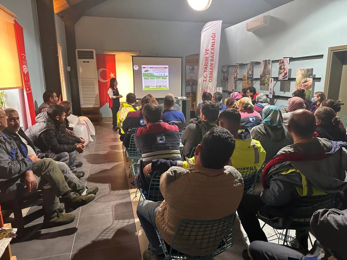 Aynı dönemde üreticilere yönelik saha ziyaretleri ve eğitim toplantıları düzenlenerek zararlının tanınması, yayılma şekli ve mekaniksel mücadele yöntemleri konusunda bilgilendirme sağlandı.