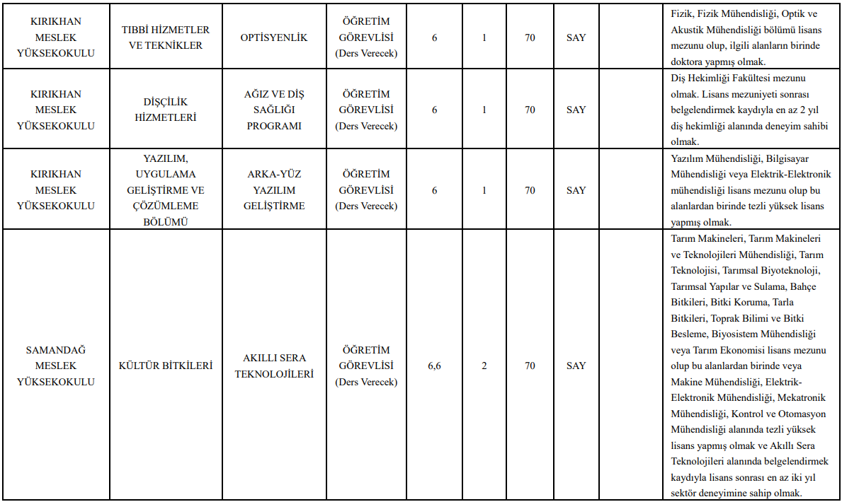 Özellikle meslek yüksekokullarına açılan kadrolarda adayların uygulamaya yönelik tecrübe sahibi olmaları dikkat çeken kriterler arasında yer alıyor.