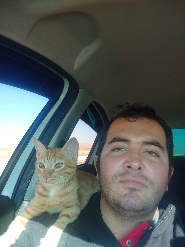 "Çalılıklar arasında iple bağlanmış çaresizdi. Balya ipiyle bağlamışlar, çalılıklara. Bu acımasızlığı nasıl yapmışlar anlamadım. Yanımda her zaman mama taşırım. Biraz verdim aç susuz kalmış küçücük hayvan. Kucaktan hiç inmedi. Ateşi vardı gözü de iltihaplıydı. Tedavi ettirdik kediyi. Bırakmadı beni, ben de onu çok sevdim ve sahiplendim."