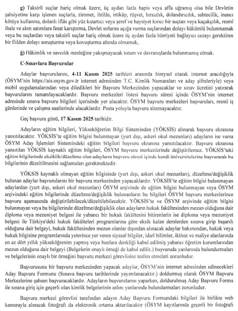 Adaylar başvurularını 4-11 Kasım 2025 tarihleri arasında, bireysel olarak ÖSYM’nin ais.osym.gov.tr adresinden veya mobil uygulama üzerinden yapabilecek.