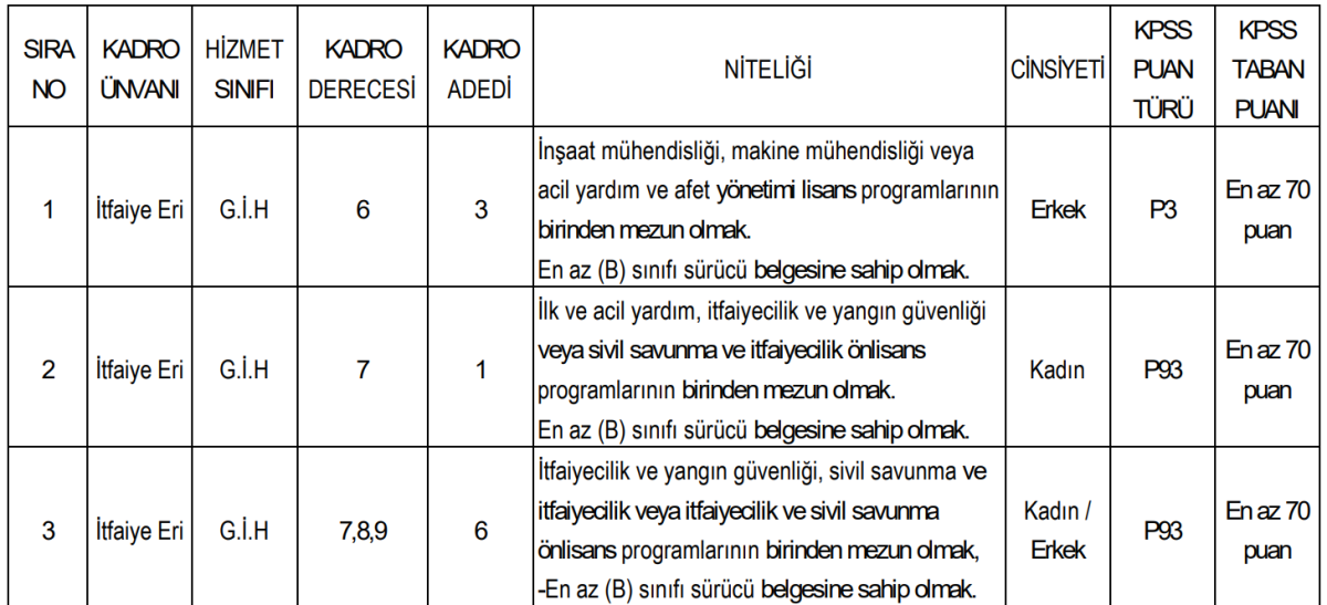 İlanda belirtilen kadrolar ve nitelikler şu şekilde açıklandı: