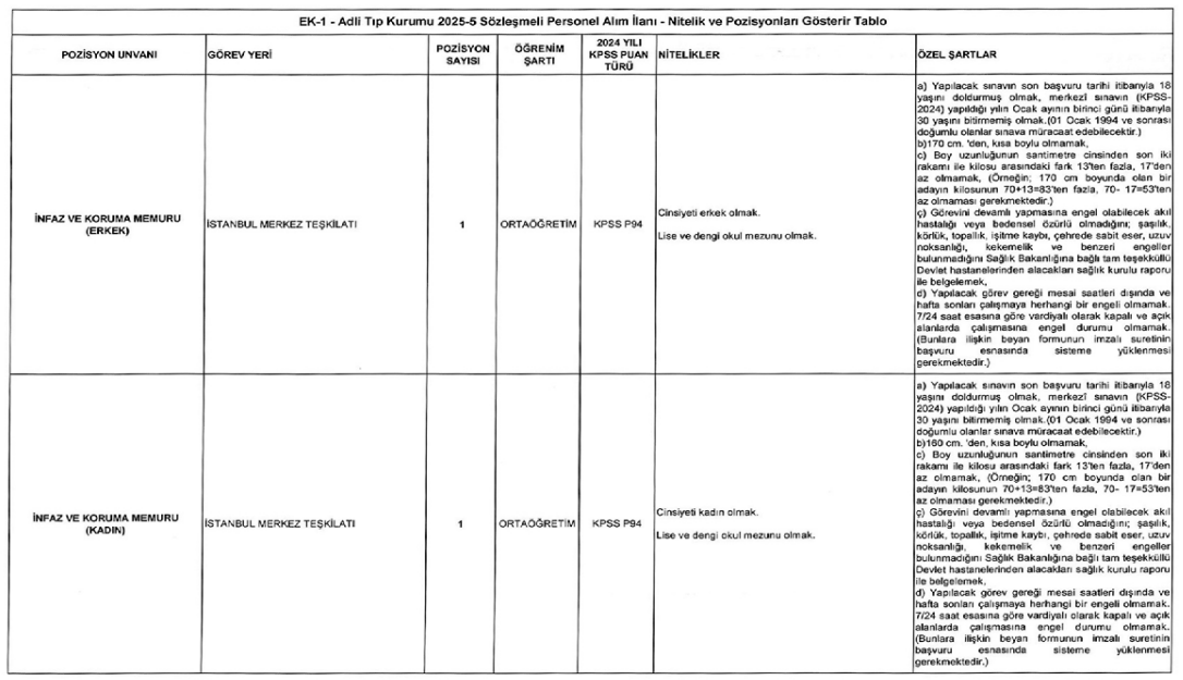 Adli Tıp Kurumu tarafından yapılacak sözlü sınavlara, 2024 yılı KPSS’ye giren ve her pozisyon için belirlenen puan türünden en az 70 puan alan adaylar başvuruda bulunabilecek.