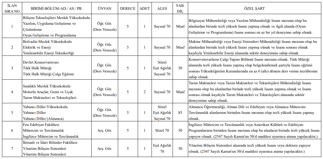 Araştırma görevlisi kadroları ise, ilgili alanlarda tezli yüksek lisans veya doktora öğrencisi olan adaylar için açıldı. Bu kadrolara başvuracak adayların 35 yaşını doldurmamış olması gerekiyor.