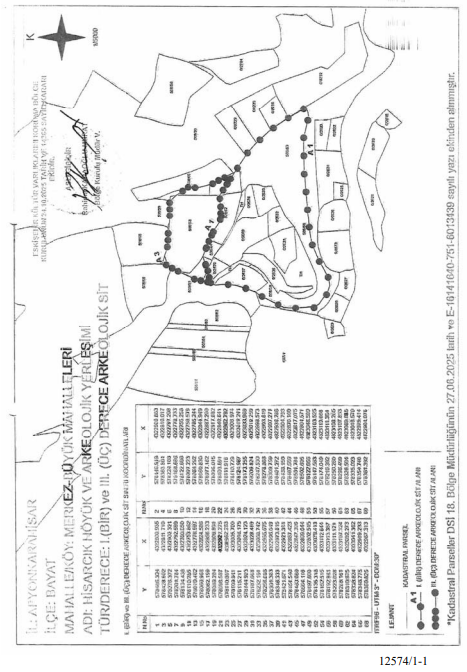 Tescil fişi ve koordinatlı harita kurul tarafından onaylandı.