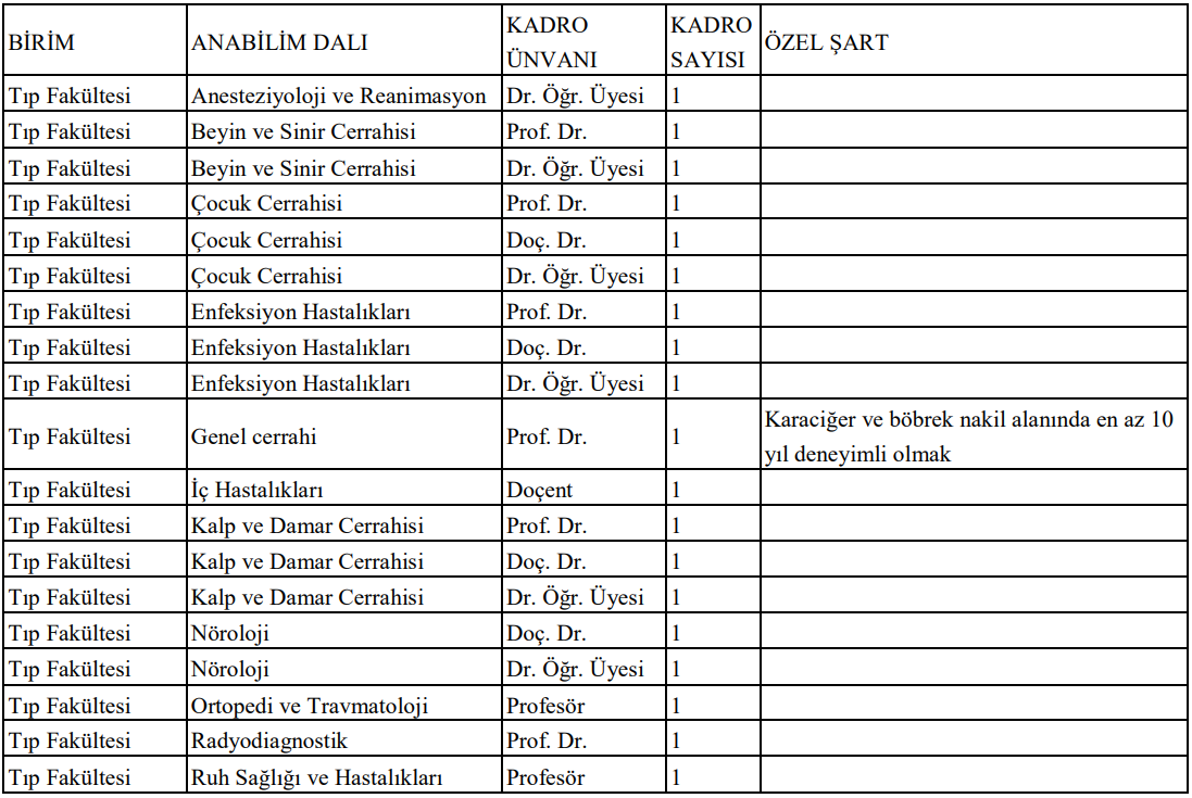 MEDİPOL ÜNİVERSİTESİ KADROLARI VE ÖZEL ŞARTLARI