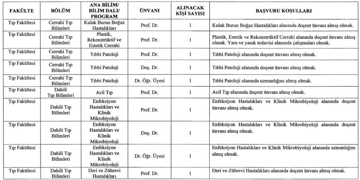 Profesör ve doçent adayları rektörlüğe, doktor öğretim üyeleri ise ilgili fakülte dekanlıklarına başvuracak. Posta ve internet üzerinden yapılan başvurular kabul edilmeyecek.
