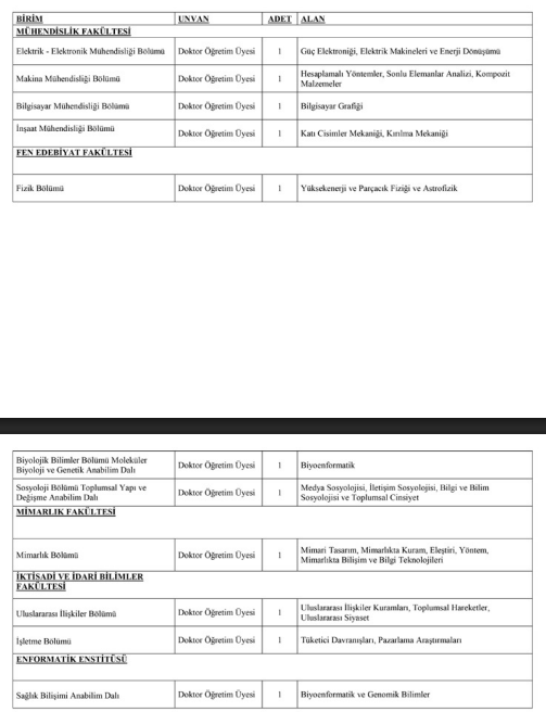 Orta Doğu Teknik Üniversitesi (ODTÜ) Rektörlüğü, üniversite bünyesinde bulunan çeşitli bölüm ve anabilim dallarında görevlendirilmek üzere Doktor Öğretim Üyesi alımı yapılacağını açıkladı. Resmî ilan, 2547 sayılı Yükseköğretim Kanunu başta olmak üzere ilgili yönetmelikler ve üniversitenin öğretim üyesi atama kriterleri doğrultusunda yayımlandı.