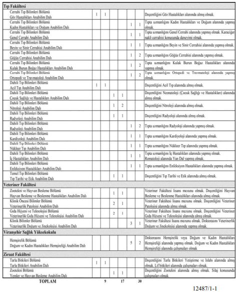 2547 sayılı Kanunun Ek-38. maddesinde belirlenen yüzde 30’luk kota kapsamında başvuru yapılabilecek doktor öğretim üyesi kadrosu bulunmadığı açıklandı.