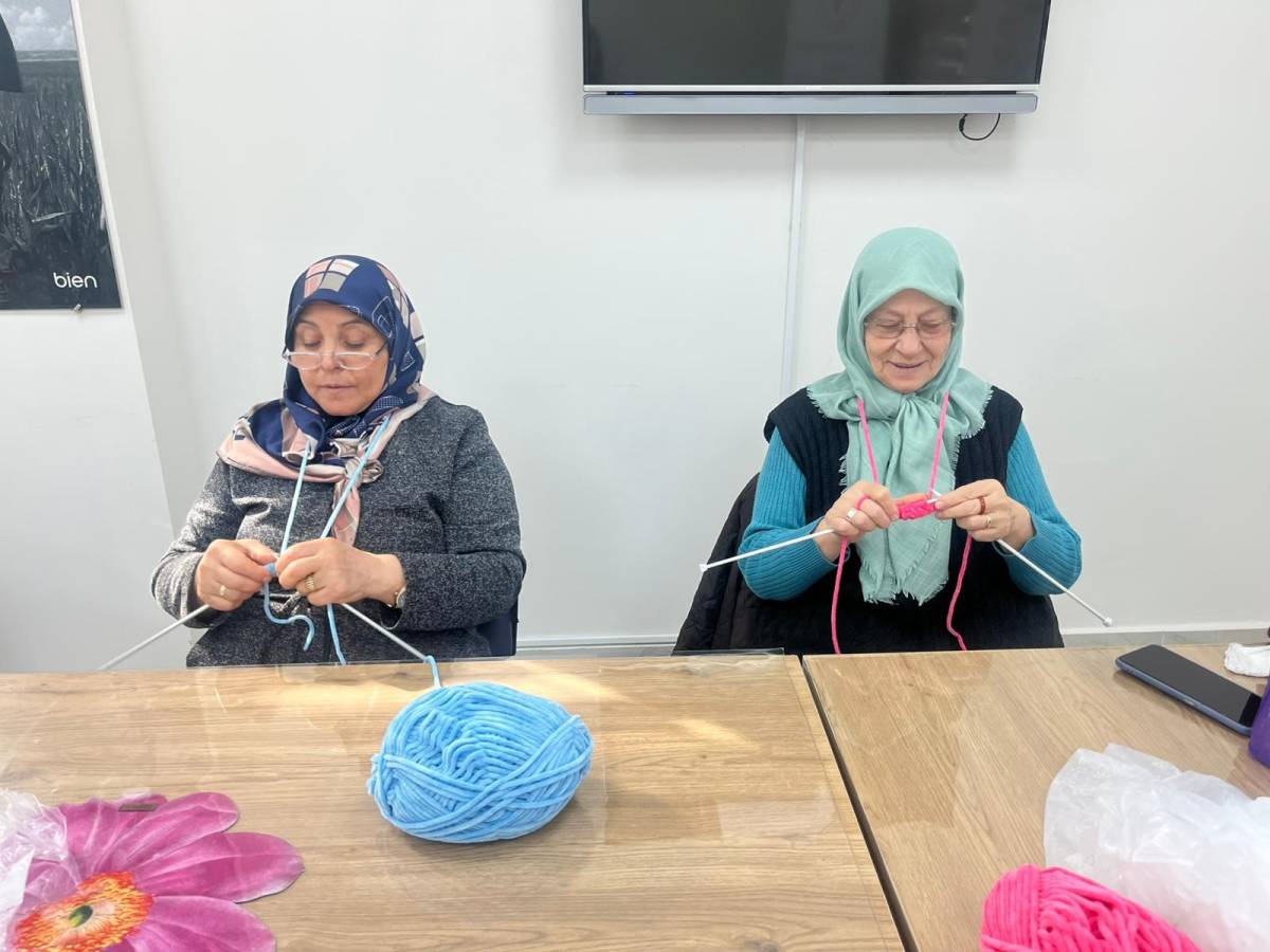 Katılımcılar örgü örerken, küçük gruplar halinde birbirlerine destek oluyor ve birlikte zaman geçirmenin keyfini yaşıyor. Bu sosyal aktivite, yaşlı bireylerin yalnızlık hissini azaltıyor ve toplumsal bağlılıklarını güçlendiriyor.