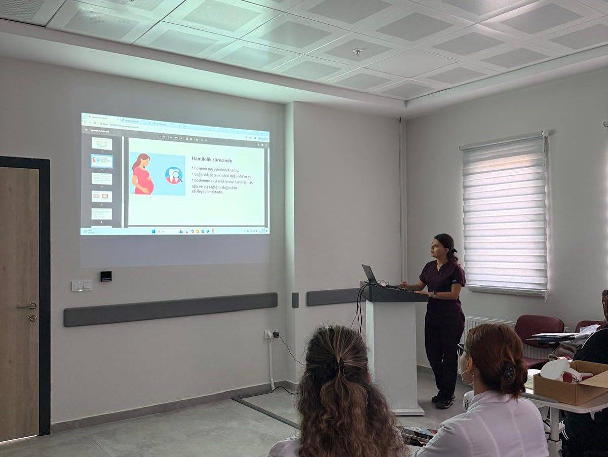 Ziyaret sırasında Uzm. Dt. Gül Seda Buldur, anne adaylarına yönelik “gebelik döneminde ağız bakımı” konulu bir eğitim verdi. Bu kapsamda gebelik sürecinde hormonal değişikliklerin diş sağlığı üzerindeki etkileri, anne adaylarının sıklıkla yaşadığı diş eti hassasiyeti ve oluşabilecek problemlerin önlenmesine yönelik bilgiler aktarıldı.