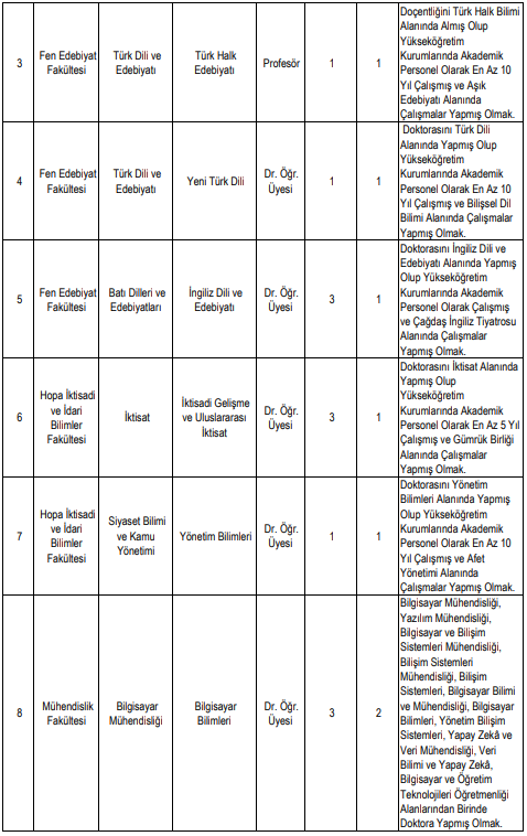 Yayımlanan ilana göre; Profesör, Doçent ve Doktor Öğretim Üyesi unvanlarında toplam 14 farklı kadro için öğretim üyesi alınacak. Başvurular, 2547 sayılı Yükseköğretim Kanunu, 657 sayılı Devlet Memurları Kanunu’nun ilgili maddeleri, “Öğretim Üyeliğine Yükseltilme ve Atanma Yönetmeliği” ile Üniversitenin kendi yönergesi hükümlerine göre değerlendirilecek.