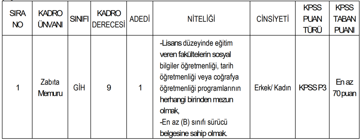 İlana göre alım yapılacak kadro bilgileri şu şekilde açıklandı: