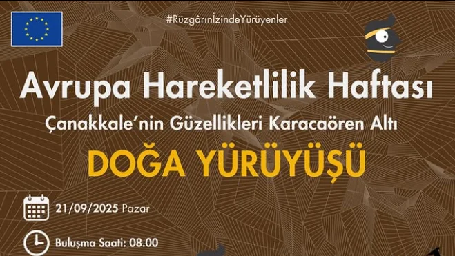 Her yıl 16-22 Eylül tarihleri arasında kutlanan ve bu yıl “Herkes için Hareketlilik” temasıyla gerçekleştirilecek Avrupa Hareketlilik Haftası kapsamında, 21 Eylül 2025 Pazar günü “Çanakkale’nin Güzellikleri Karacaören Altı Doğa Yürüyüşü” yapılacak. Etkinlikte ayrıca çevre temizliği de gerçekleştirilecek.