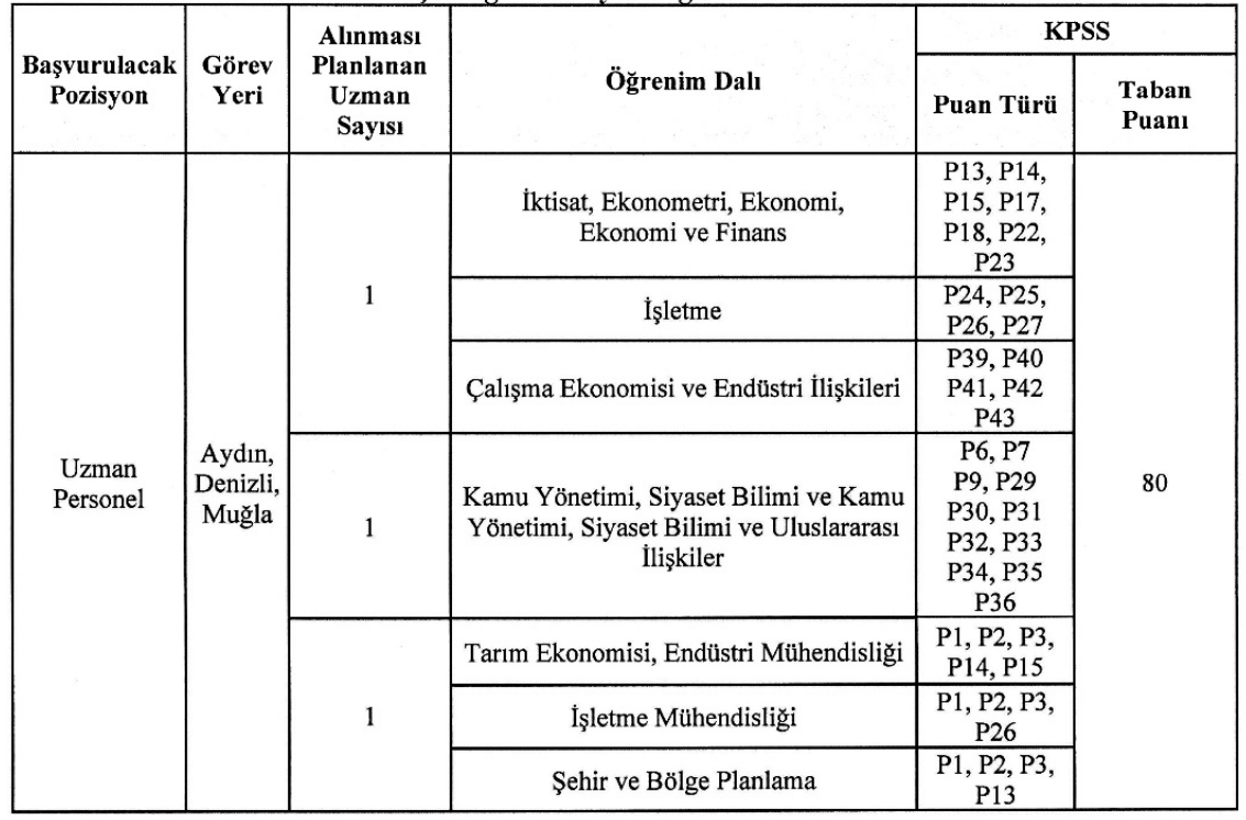 KPSS Şartı: 2024–2025 KPSS’den ilgili puan türlerinde en az 80