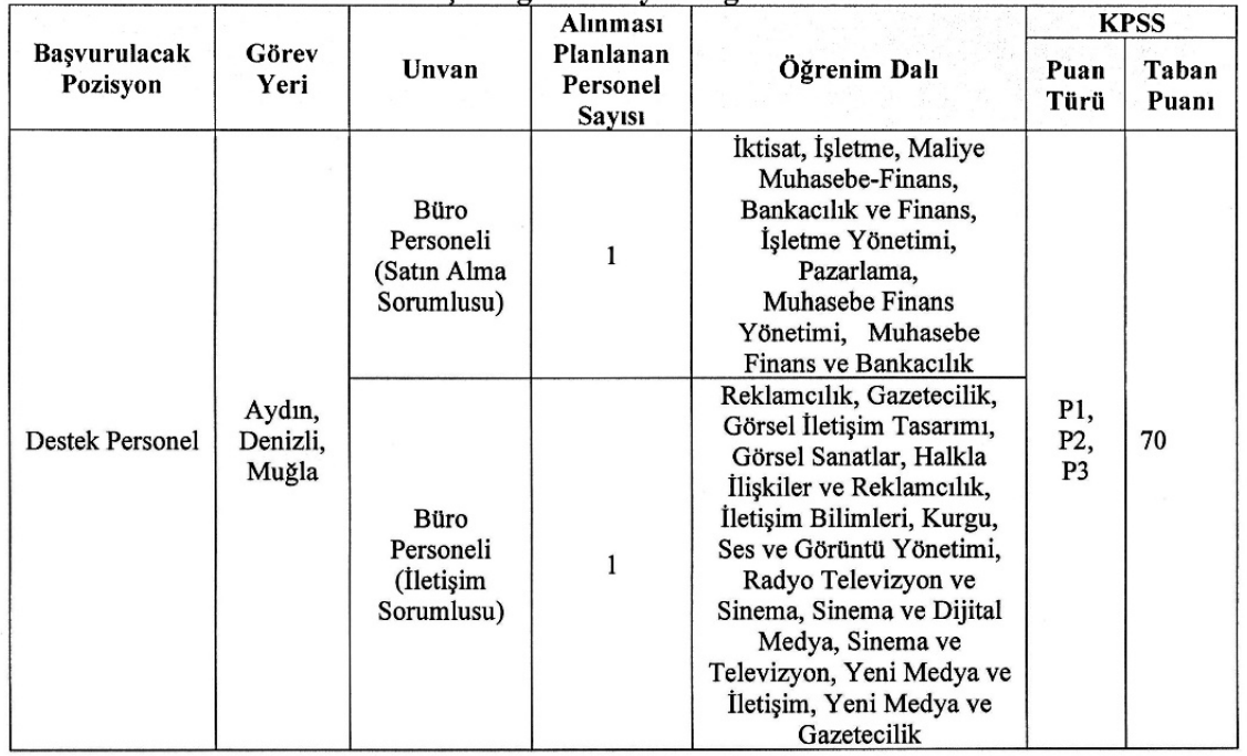 2) Büro Personeli – İletişim Sorumlusu (1 kişi)