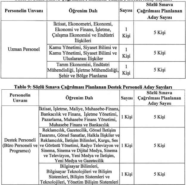 Davet: Her pozisyon için kontenjanın 5 katı aday