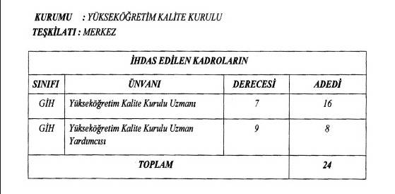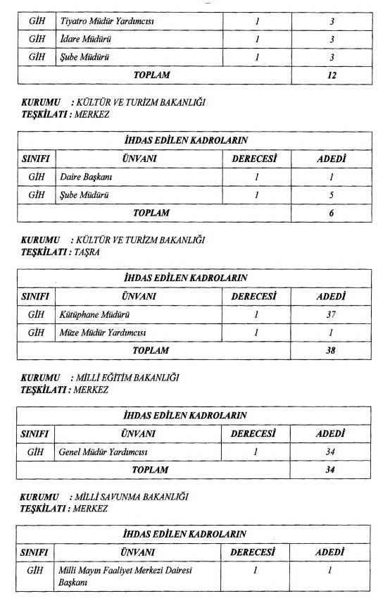 Milli Eğitim Bakanlığı: 34 adet Genel Müdür Yardımcısı kadrosu.