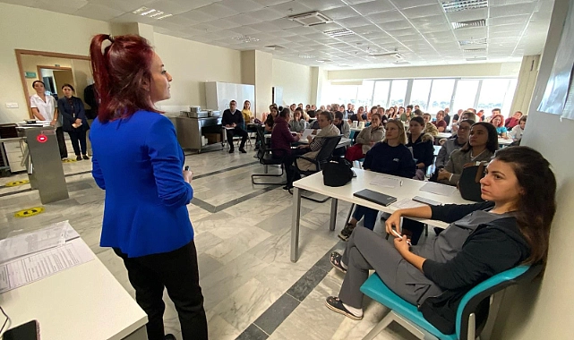 İl Sağlık Müdürlüğü’ne bağlı İşyeri Sağlık Güvenlik biriminde görev yapan İş Güvenliği Uzmanı Kübra Tekin Silahtar tarafından verilen eğitimde, hastane çalışanlarına güvenli bir çalışma ortamı sağlamak amacıyla dikkat edilmesi gereken hususlar anlatıldı.