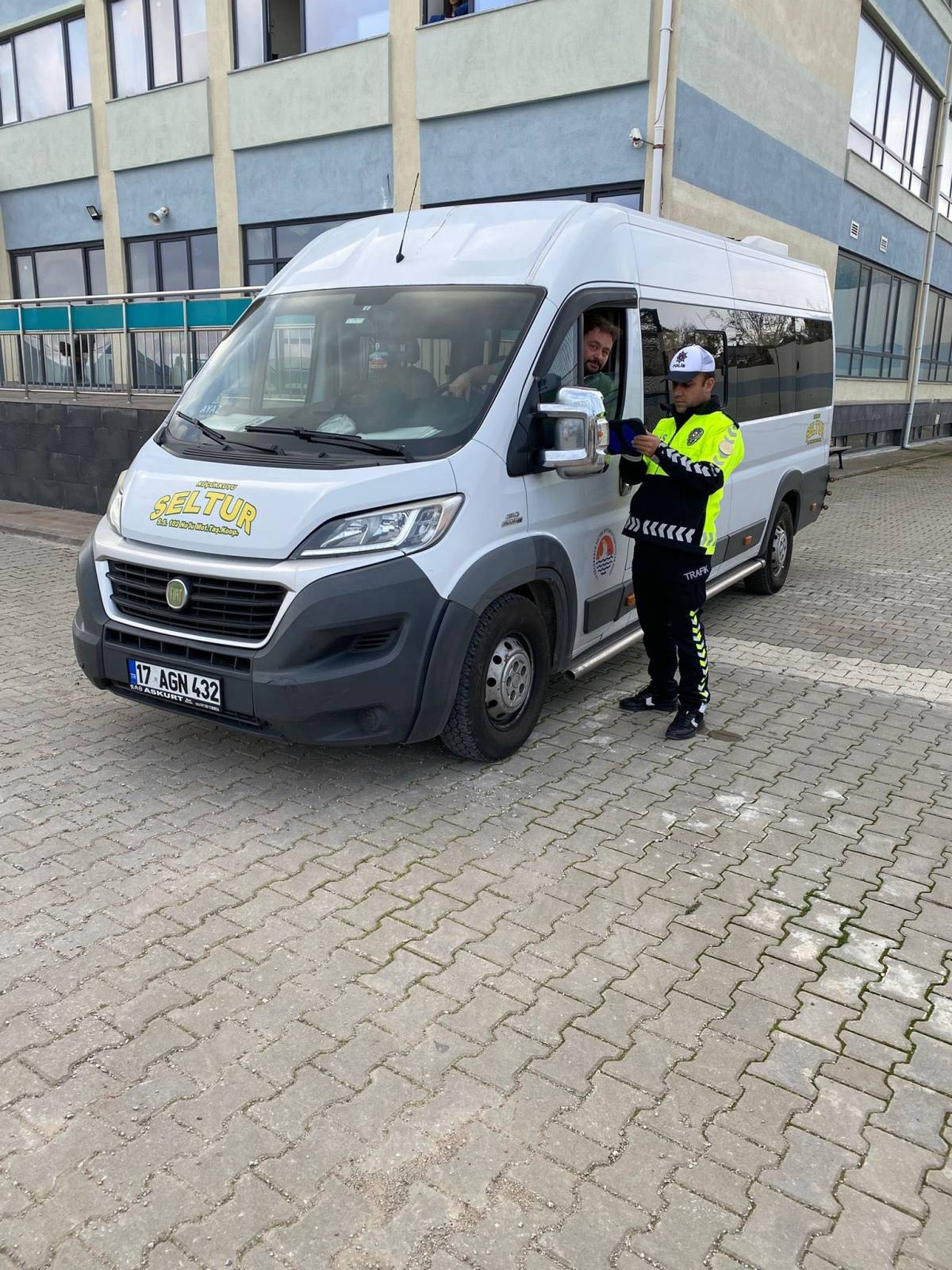 Uygulamanın önemli ayaklarından biri de okul servisleri oldu. Denetimlerde toplam 14 okul servis aracı durdurularak evrak ve güvenlik kontrolleri yapıldı. Servislerin çalışma izin belgeleri, sürücü ehliyetleri, emniyet kemeri donanımları, araç içi düzenleri ve rehber personel durumu tek tek incelendi.