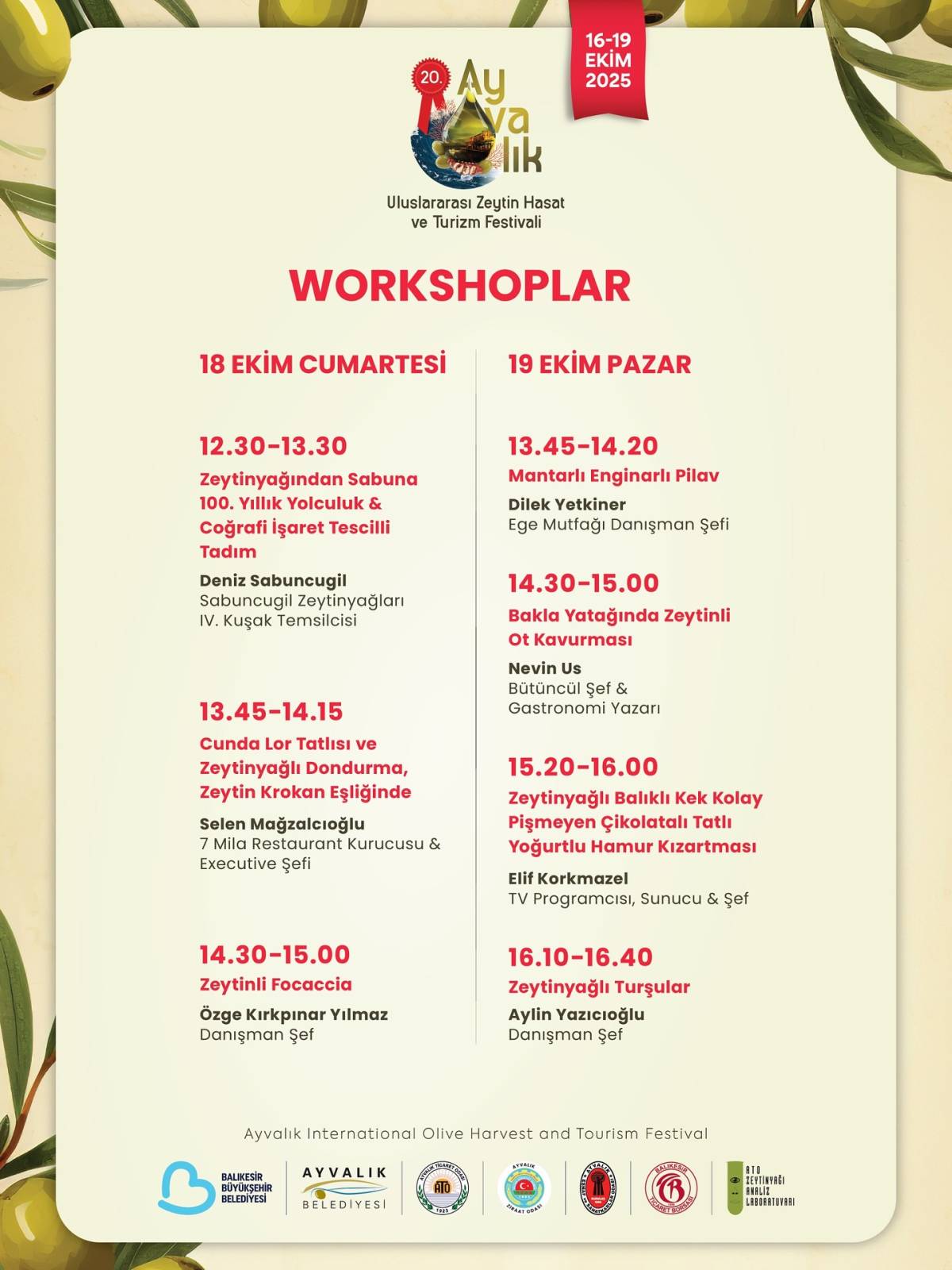 Bu yılki festival, “Turizmin Değeri, Zeytinyağının Başkenti Ayvalık’ta Buluşalım!” temasıyla, hem yerel üreticileri hem de ziyaretçileri bir araya getiriyor. Panel ve workshop programları, Ayvalık’ın bereketli zeytin hasadına ışık tutacak teknik konular ve ilham verici deneyimlerle dolu.