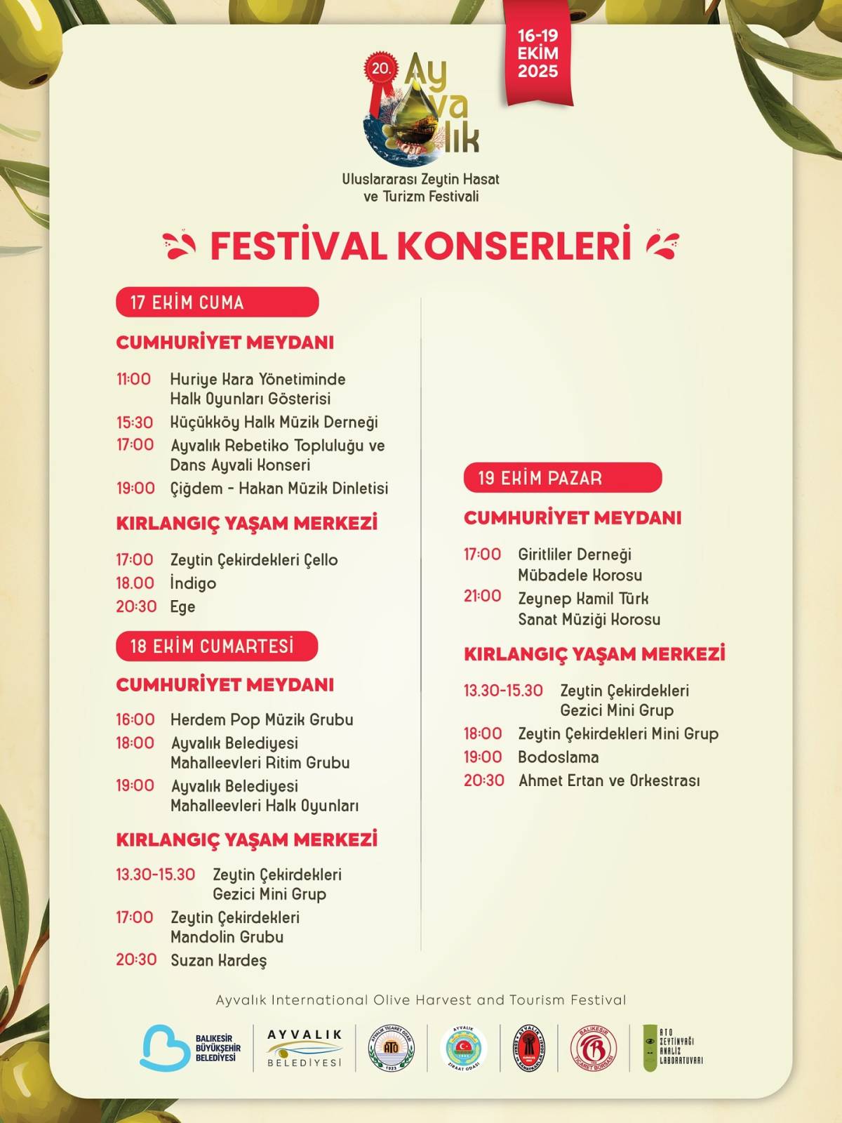Festival süresince Kırlangıç Yaşam Merkezi ve Cumhuriyet Meydanı’nda gün boyu çeşitli konser ve gösteriler gerçekleşecek.