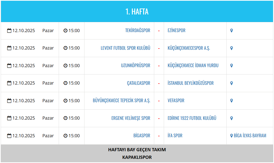 12 Ekim Pazar günü saat 15.00’te oynanacak bu karşılaşmalar, her iki takım için de sezonun gidişatına yön verecek nitelikte olacak. Ezinespor deplasmandan puan veya puanlarla dönmeyi hedeflerken, Bigaspor ise evinde alacağı galibiyetle lige moralli bir başlangıç yapmayı planlıyor.