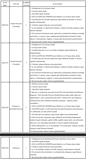 Tüm pozisyonlarda vardiyalı çalışma sistemi uygulanacak ve personel üniversitenin tüm yerleşkelerinde görevlendirilebilecek.