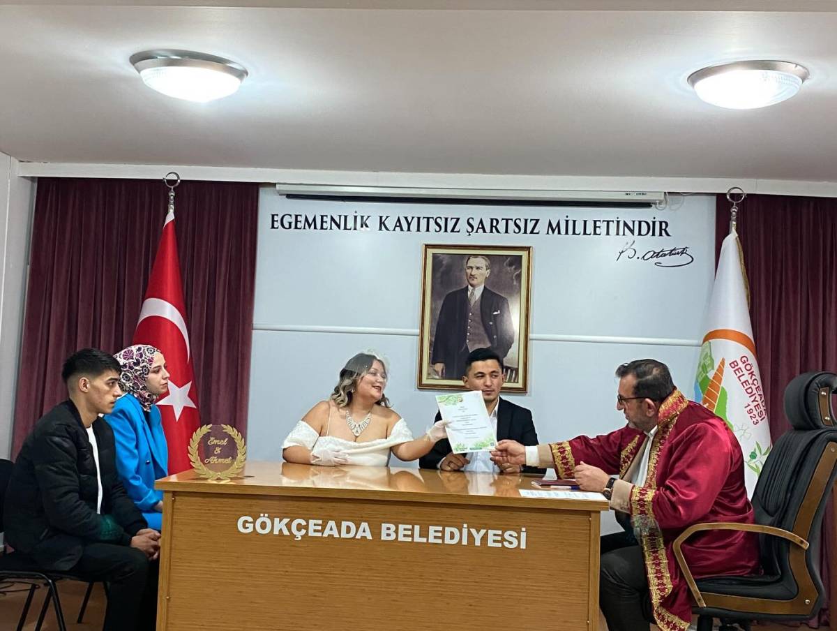 Gökçeada Belediye Başkanı Bülent Ecevit Atalay, Emel Kaçar ve Ahmet Kurt çiftinin nikah akdini gerçekleştirerek mutluluklarına ortak oldu. Törende, belediyenin yeni evlenen çiftler için başlattığı anlamlı gelenek sürdürülerek, çift adına dikilen ağaçların sertifikası takdim edildi.