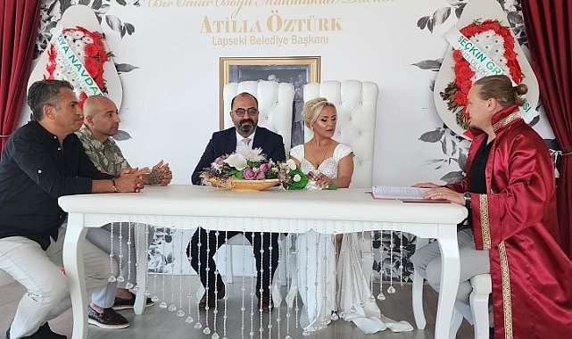 Lapseki Belediye Başkanı Atilla Öztürk, Yasemin Ayvaz ve Şevket Hakan Akbulut çiftinin nikah akdini gerçekleştirdi. Tören, Lapseki Belediyesi Nikah Salonu’nda düzenlendi.