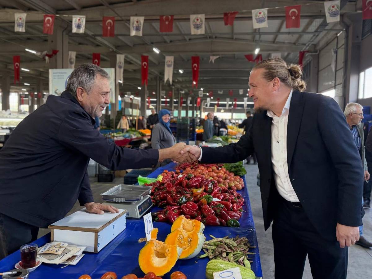 Pazarcı esnafı Süleyman Kavas’ın misafirperverliğiyle kurulan kahvaltı sofrasında bir araya gelen heyet, hem sohbet etti hem de pazardaki esnafı ziyaret ederek alışveriş yapan vatandaşlarla buluştu.
