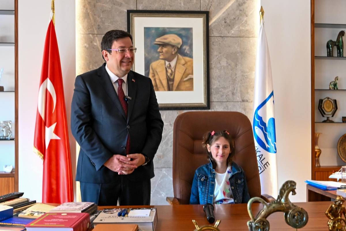 Çanakkale Belediye Başkanı Muharrem Erkek, 23 Nisan Ulusal Egemenlik ve Çocuk Bayramı kutlamaları kapsamında başkanlık makamını, azmiyle herkese örnek olan küçük Güneş’e devretti. Belediye personeli Samet Uyanık’ın kızı olan ve uzun süredir mücadele ettiği kemik iliği yetmezliği hastalığını yenerek sağlığına kavuşan Güneş Uyanık, bayram gününde Çanakkale’nin sembolik belediye başkanı oldu. Makam odası, Güneş ve üç kardeşinin neşeli kahkahalarıyla dolup taşarken, ortaya çıkan renkli görüntüler bayram coşkusunu zirveye taşıdı.