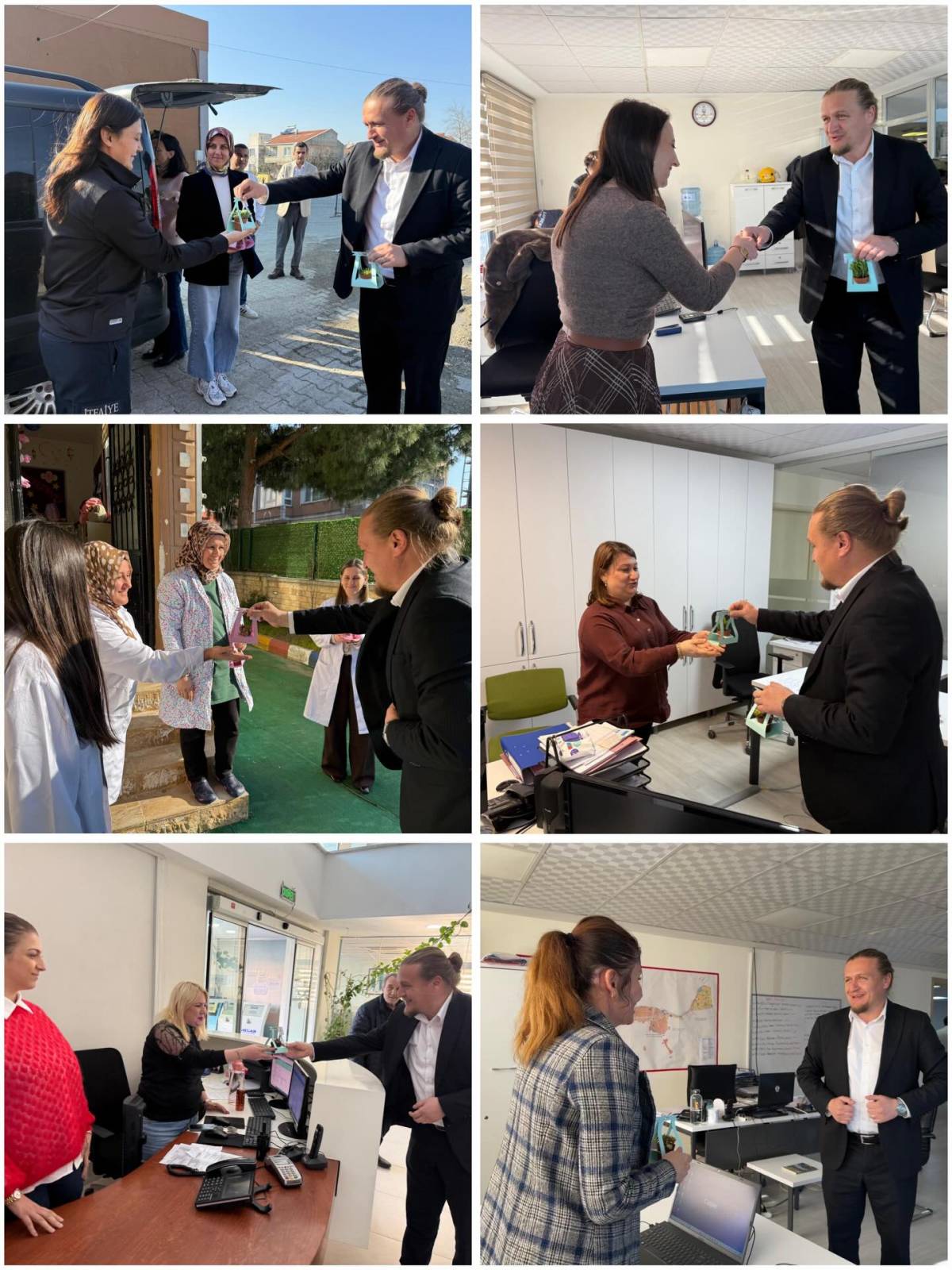 8 Mart Dünya Kadınlar Günü kapsamında Lapseki Belediye Başkanı Atilla Öztürk, ilçedeki resmi kurumlarda görev yapan kadın personeli ziyaret ederek anlamlı bir gün geçirdi. İlçenin kamu düzeni ve vatandaşlara sunulan hizmetlerde büyük emeği olan kadın çalışanlarla bir araya gelen Başkan Öztürk, görev başındaki kadınlara çiçek takdim ederek bu özel günlerini kutladı.