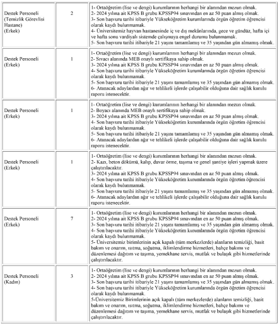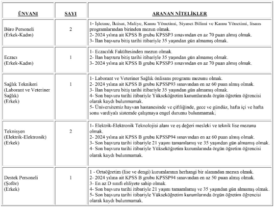 Rektörlük, gerekli görülmesi halinde ilan sürecinin her aşamasında değişiklik yapma veya ilanı tamamen iptal etme hakkını saklı tuttuğunu da duyurdu.