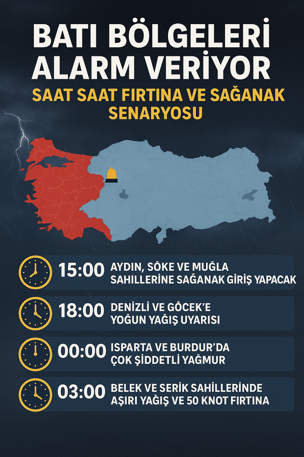 Batı Türkiye Alarm Veriyor: Saat Saat Fırtına ve Sağanak Senaryosu