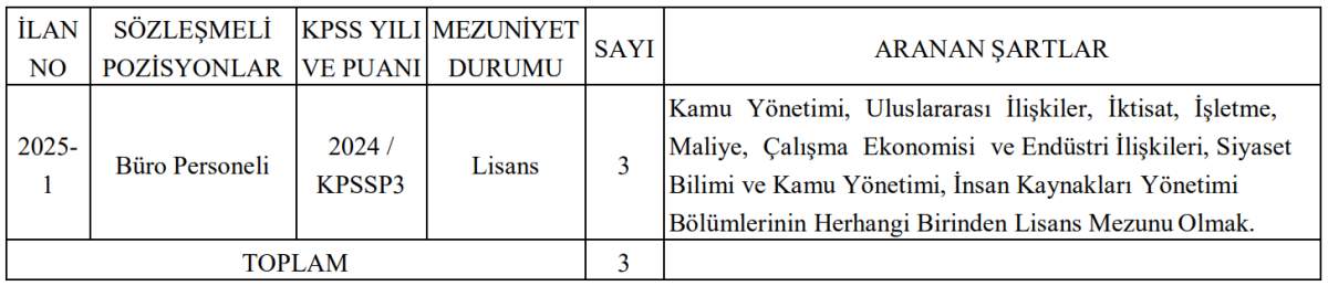 Üniversitenin yayımladığı ilana göre alımlar, Büro Personeli pozisyonunda gerçekleştirilecek. Adayların 2024 yılı KPSS (B) grubu (KPSS-P3) puanına sahip olmaları gerekiyor.
