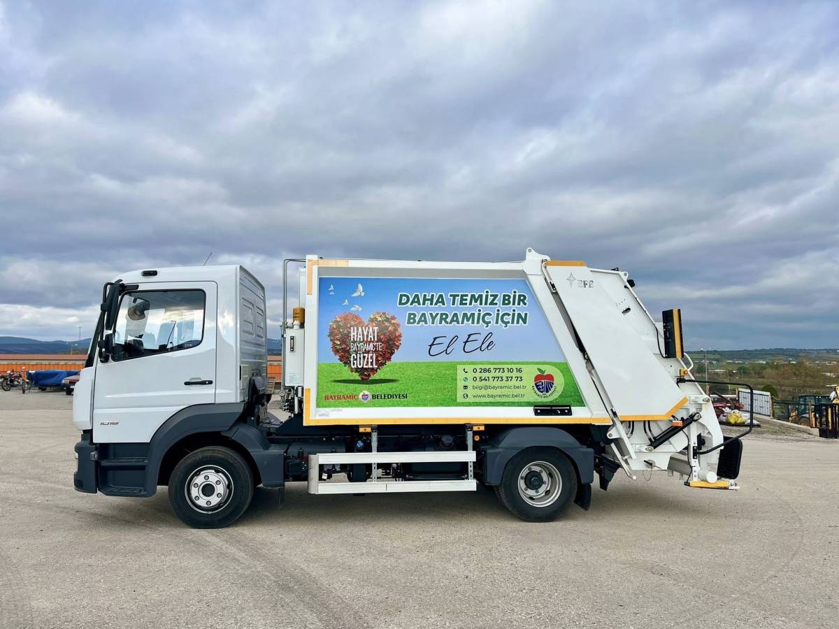 Bayramiç Belediyesi, temizlik hizmetlerinin daha etkin ve verimli bir şekilde yürütülmesi amacıyla araç filosunu yeniliyor. En yenisi 2014 yılında alınan çöp kamyonlarının kullanım sürelerini doldurmasının ardından belediye, kendi öz kaynaklarıyla Devlet Malzeme Ofisi’nden iki adet yeni çöp kamyonu satın aldı. Araçların ilki belediyeye teslim edildi.