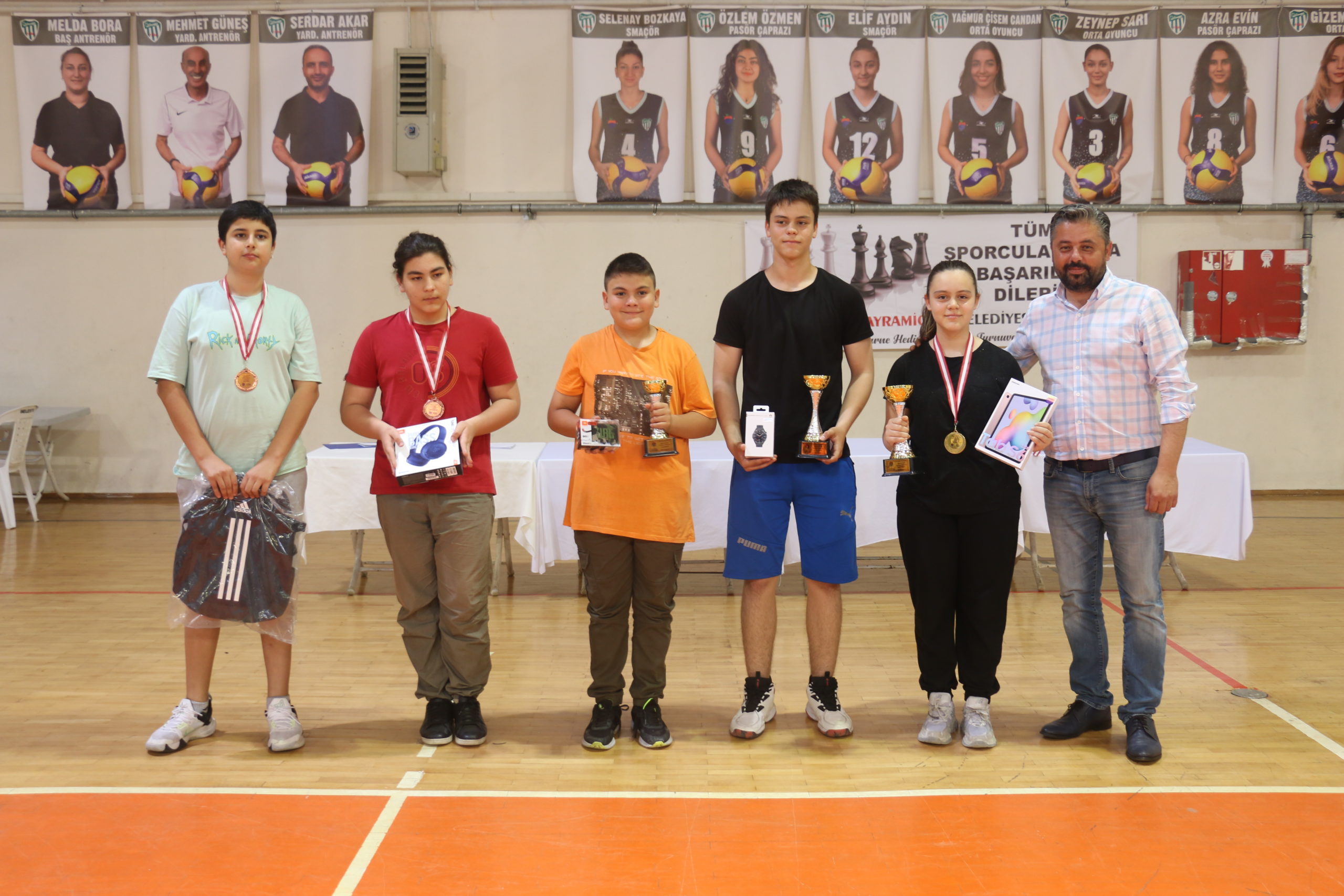 ödüllerini ve madalyalarını Belediye Başkanı Mert Uygun, Gençlik Spor İlçe Müdürü Serdar Akar ve