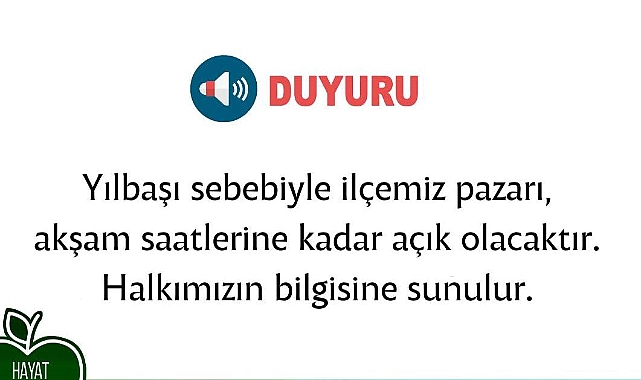 Vatandaşların yeni yıl alışverişlerini rahatlıkla yapabilmesi için pazarda genişletilen hizmet saatleri ile ilgili yapılan açıklamada, esnafın ve alışveriş yapacakların daha fazla vakit geçirebileceği belirtildi.
