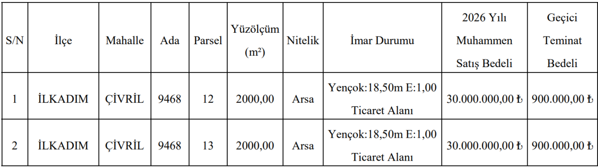 Samsun’da ise İlkadım ilçesinde yer alan 2 adet ticaret alanı arsası dikkat çekti. Her biri 30 milyon TL’den satışa sunulan arsalar için yatırımcıların yoğun ilgi göstermesi bekleniyor.