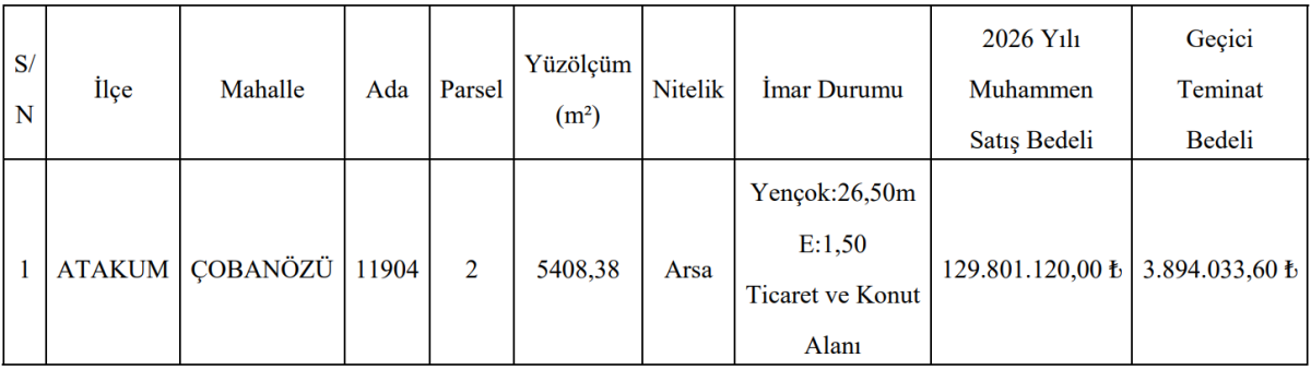 Ancak en dikkat çeken satışlardan biri Atakum ilçesinde gerçekleşecek. Burada satışa çıkarılan tek bir arsanın bedeli tam 129 milyon 801 bin TL olarak açıklandı.