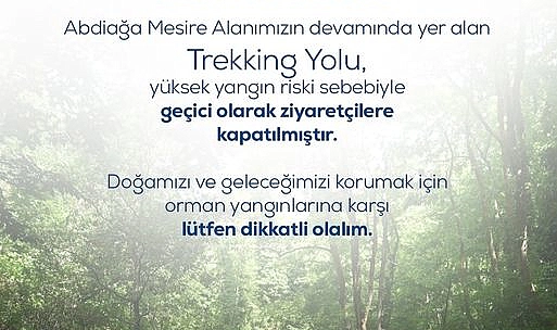 Biga Belediyesi, sosyal medya üzerinden yaptığı açıklamada, Abdiağa Mesire Alanı’nın devamında yer alan trekking yolunun, yüksek yangın riski nedeniyle geçici olarak ziyaretçilere kapatıldığını duyurdu.