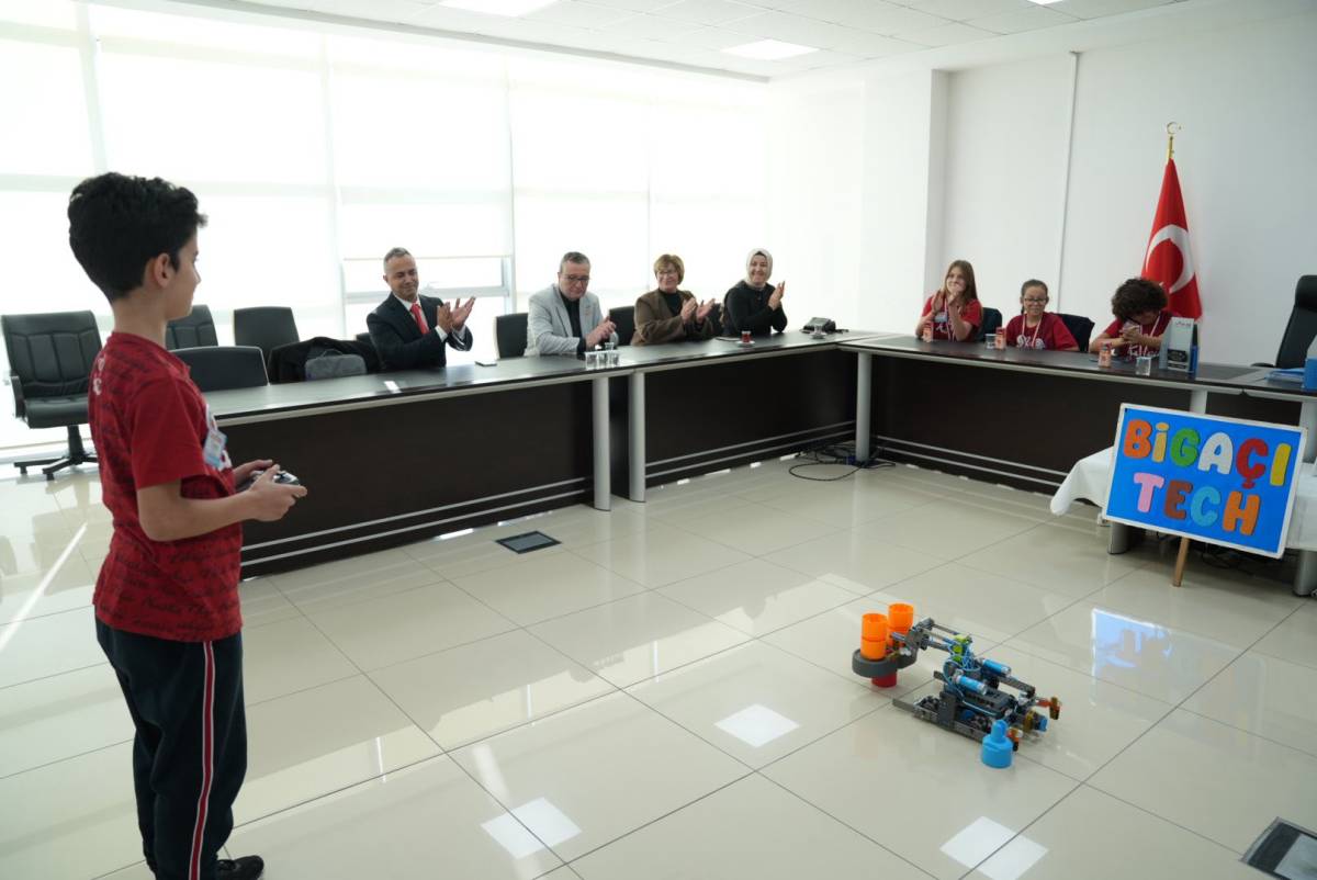 Belediyede gerçekleşen buluşmada Başkan Şen, öğrencileri elde ettikleri dereceden dolayı tebrik ederek, teknoloji ve robotik alanında gösterdikleri performansın Biga için gurur verici olduğunu söyledi.