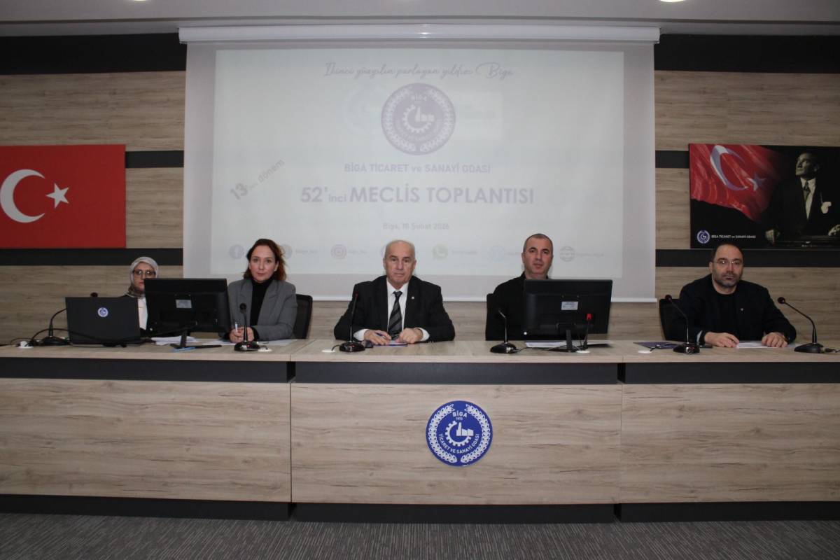 Biga Ticaret ve Sanayi Odası (Biga TSO) Şubat ayı Olağan Meclis Toplantısı, Meclis Başkanı Hüseyin Erdoğan başkanlığında yapıldı. Toplantıda 6 Şubat depremi anılırken, ekonomik gelişmeler, tarım sektörünün sorunları ve Bigaspor’un projeleri gündeme geldi. Toplantıda 2025 yılı faaliyet raporunu sunan Biga Ticaret ve Sanayi Odası Başkanı Şadan Doğan; “Biz göreve geldiğimiz ilk gün evrak işi yapan bir oda değil; lobicilik faaliyetleri ile, kamuoyu oluşturma gücüyle, gündeme takılan değil gündemi oluşturan bir oda olma hedefiyle yola çıkmıştık” dedi.