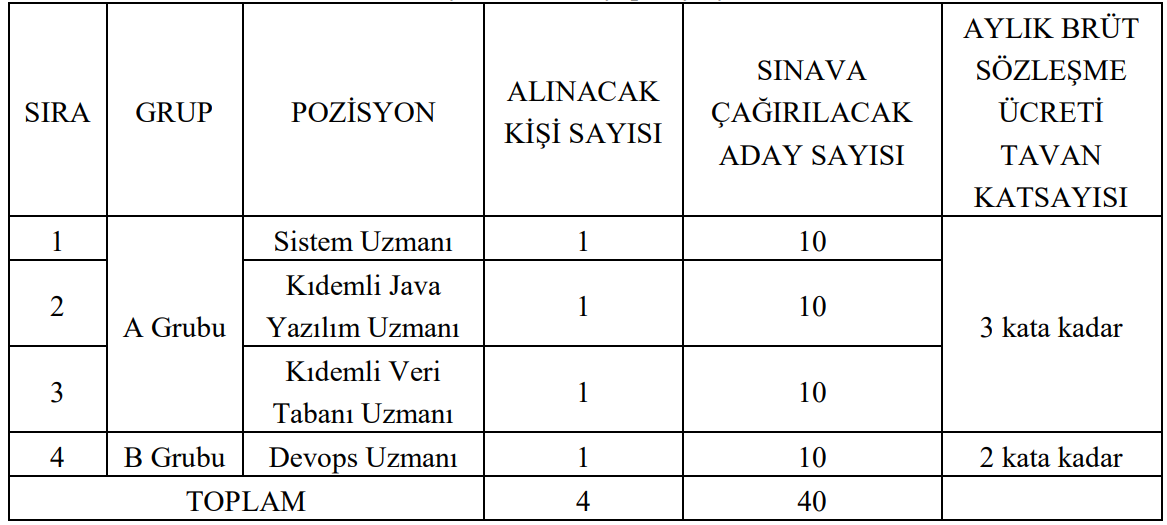 Toplamda 4 bilişim uzmanı alımı yapılacak.