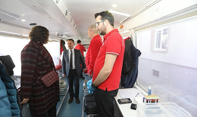 Mobil Kan bağışı noktasında Kan bağışlayan vatandaşlarla sohbet eden Vali İlhami Aktaş, duyarlılıklarından dolayı teşekkür etti.