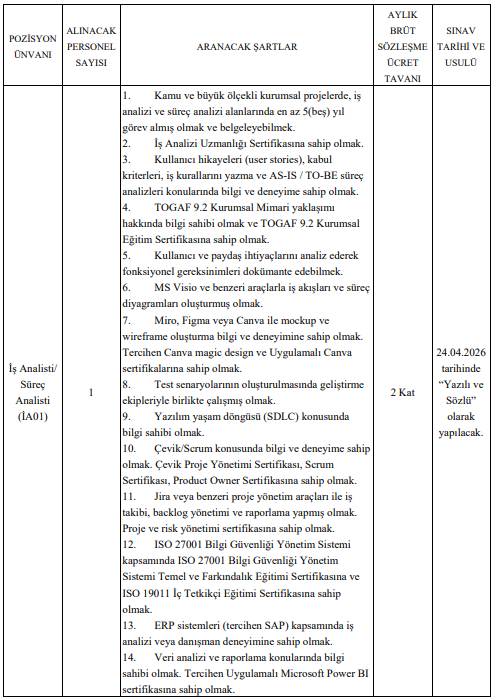 Yazılı ve sözlü sınav ise 24 Nisan 2026 tarihinde gerçekleştirilecek.