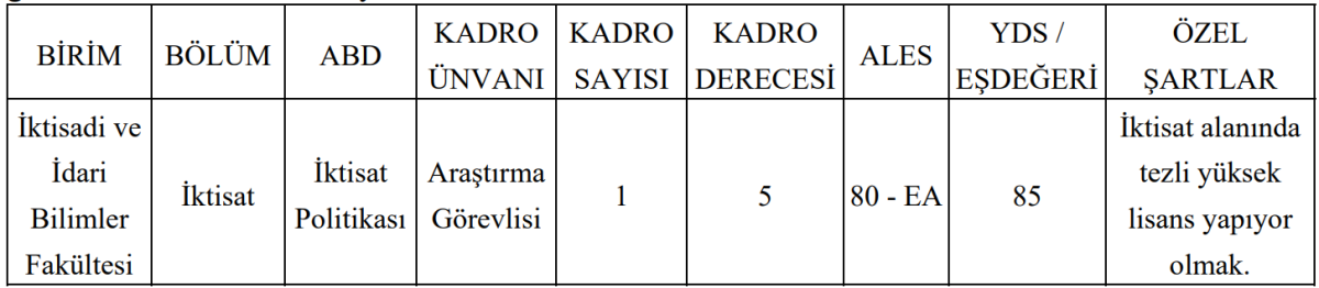 Ayrıca adayların, İktisat alanında tezli yüksek lisans yapıyor olmaları şartı aranıyor.
