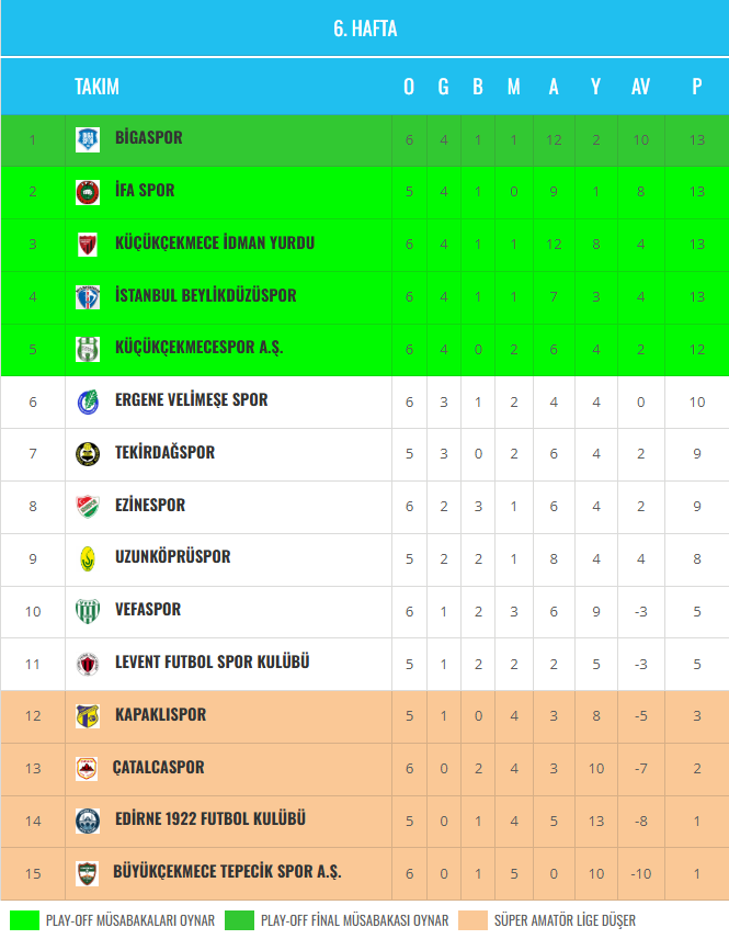 Sezona güçlü bir başlangıç yapan Bigaspor, 6 maçta 4 galibiyet, 1 beraberlik ve 1 mağlubiyet alarak 13 puan topladı ve liderlik koltuğuna oturdu. Teknik Direktör ve futbolcular, saha avantajını kullanarak üç puanı hanesine yazdırmak istiyor.